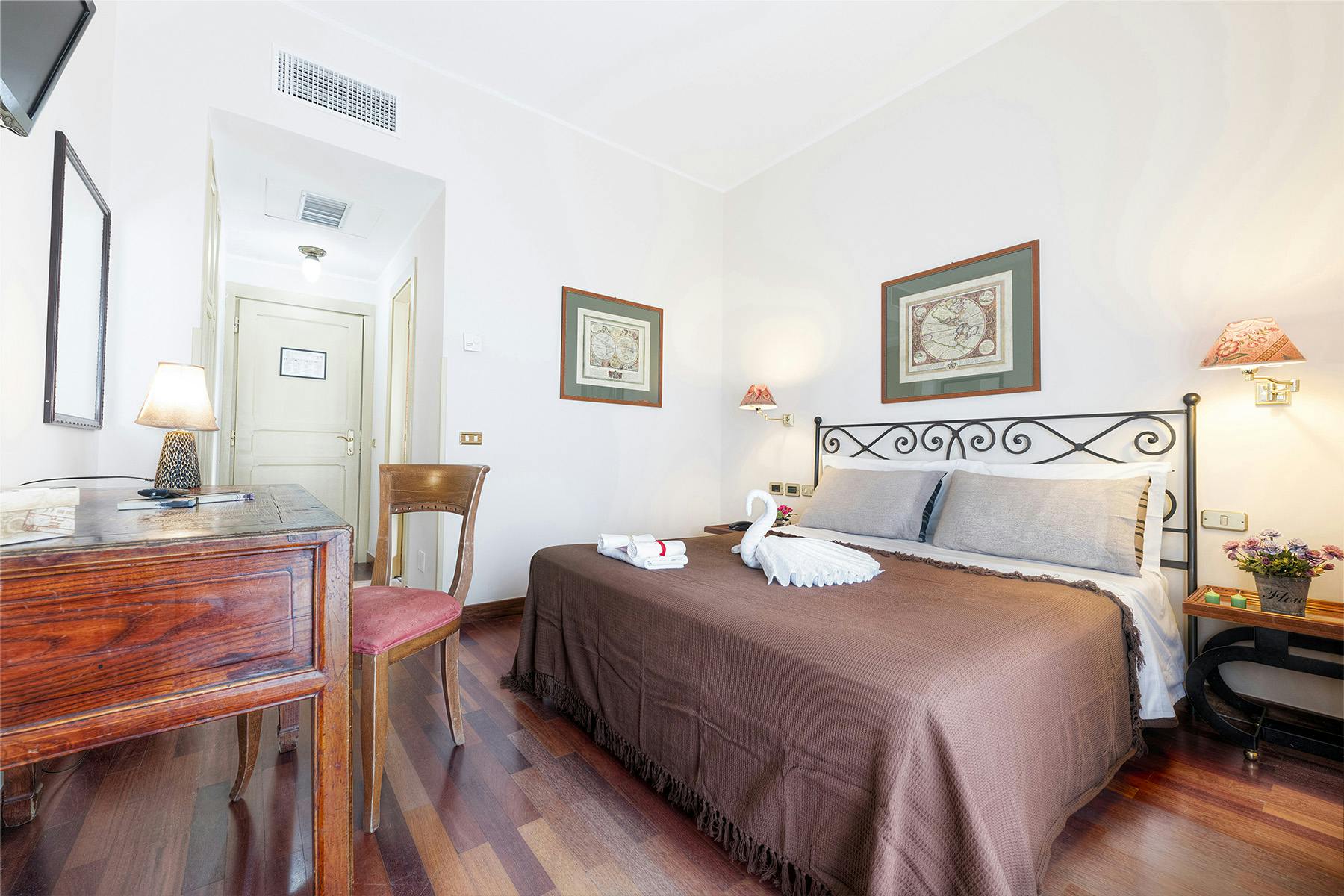 The double rooms, with shower or bath, are thought to let a couple spend a its stay with pleasure. Some rooms also have a balcony with a panoramic view of the city.