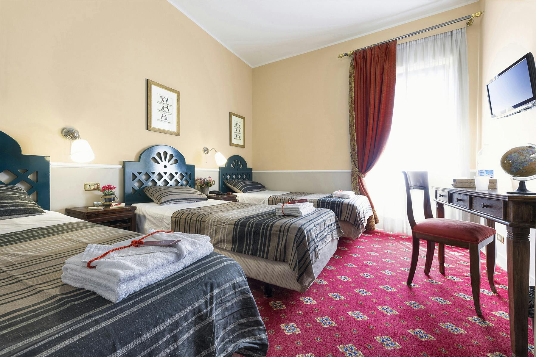 The triple rooms can have three single beds or one double and one single, at the choice of the client. They could therefore satisfy both the needs of a young family, and the travelers who came to Rome for a friends' weekend.